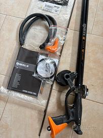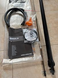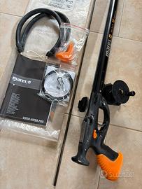 Il Viper Pro DS è un must per i pescatori subacquei, incluso di staffa Mares per GoPro. È progettato con una canna rigida ⌀ 28 in alluminio anodizzato che offre una resistenza e una durata eccezionali con guida asta integrato che garantisce un allineamento e tiro preciso. Incorpora un meccanismo di sparo con grilletto e sgnacia sagola in acciaio altamente sensibile che garantisce una risposta rapida a ogni pressione del grilletto. Il manico preformato con impugnatura anatomica garantisce una presa ergonomica e riduce l'affaticamento il tallone di caricamento garantisce maggiore stabilità e sicurezza, anche in caso di forte tensione. E’ dotato di una Asta Tahitiana da ⌀ 6,5 mm con alette, un doppio elastico S-Power Speed ⌀ 16 mm con ogiva in dyneema ed il mulinello Spiro Vertical integrato che facilita la gestione della sagola e la ricarica rapida. - archetto rimovibile per testata - asta con pinnette mai usata - doppio elastico mai usato - accessori mai usati