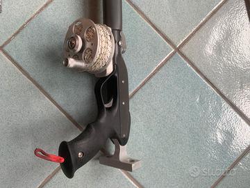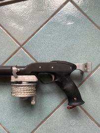 Arbalete Seatec Gabbiano Sport da 90 cm , dotato di sistema per cambio rapido delle testine , doppia testina con elastici da 20mm e 18mm , due aste di cui una mai usata . E stato montato un mulinello Omer su un basamento in anticorrodal fresato dal pieno , anche l’appoggio sternale e’ stato sostituito con uno rinforzato sempre fresato dal pieno , intervento reversibile rimontando i pezzi originali .