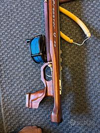 vendo arbalete in teak di seawolf, si tratta del predator vela, allestito con tre elastici, asta da 7,5 e mulinello con 100 metri di dynema. Completo di sacca porta fucile