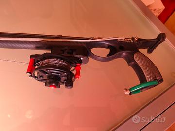 arbalete assemblato con fusto in carbonio 26/29, testa roller con pulegge con cuscinetti, mulinello LG e porta mulinello per trasformazione demo, impugnatura Pathos/Effesub, elastici Rob Allen...... il tutto in ottimo stato