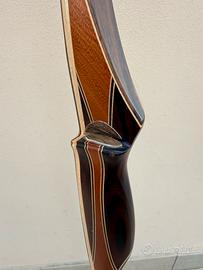 Riser: Osage Orange e un eccezionale Curupay molto vecchio (Red Cebil). Intarsi in acero e guayubira.