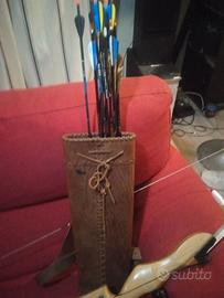 Arco club 500 tenuto perfettamente con mirino guida freccia e bilanciere corda cambiata da poco faretra con una decina di frecce da allenamento faretra da cintura a protezione braccio in plastica