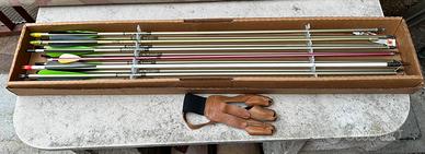 Vendo arco compound usato, potenza 60 libre e allungo 30” ; con 10 frecce usate + 2 con bobina avvolgi filo per la pesca e 1 guanto da tiro.