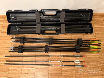 12 frecce EASTON X10 PRO TOUR NUOVE E MAI USATE con custodia, 74,5cm, spine 380, con PUNTE EASTON TUNGSTENO DA 120gr e PENNE QUICKSPIN.