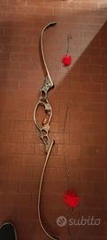 Ottimo arco leggero per tiro da campagna , riser presenta segni di usura , flettenti praticamente nuovi come da foto , la particolare forma del riser smorza le vibrazione aumentando la precisione.