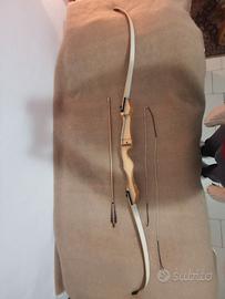 vendo Arco scuola in legno modello "Ragim Italy". 68" (pollici) di altezza. 36 libre a 28" di estensione. l'arco funziona perfettamente e non necessita di alcuna manutenzione. venduto con 5 frecce artigianali come da immagine