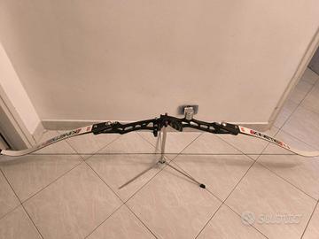 Offre buona stabilità e precisione, rendendolo ideali per iniziare con successo nel tiro con l'arco. Completo di mini bilancino e adatto alla modifica per renderlo olimpionico. É fornito con tutto il materiale possibile e immaginabile, supporto per non appoggiarlo a terra, frecce, ricambi, parabraccio, pettorina, elastico per esercizi di trazione, borsa per trasporto(solo questa costa 90€) e molto altro visionabile.