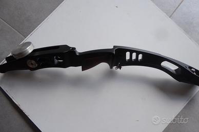 Vendo IN BLOCCO arco (DESTRO) composto da Riser Spigarelli nero peso 1,500 kg, sistema di allineamento dei flettenti, regolazione della potenza, grip in legno, rest magnetico Spiga, peso aggiuntivo 210 gr, Flettenti Carbon-Foam nero opaco 35 libbre, bottone zero plus e corda 8125G PRO giallo fluo. Regalo custodie in pile per i flettenti e custodia per il riser