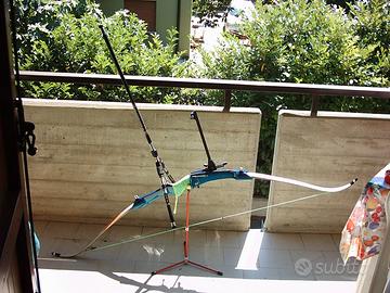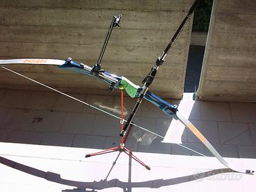 Cedo a malincuore splendido Arco Olimpico Yamaha "EOLLA" riser 26"+ flettenti CERAMICS (40* Long Limbs con foderi originali e potenza regolabile con tre diverse piastre da interporre tra riser e flettenti, al riguardo di questi ultimi da notare che sono anche compatibili con il modello prec. Alfa EX) In splendida finitura "Eolla"" sfumata verde/blu perlati, completo di rest e bottone Beiter mirino AGF Carbon stabilizzazione a "Y" Easton Carbon completa di pesi e tappi in gomma con smorzatori inerziali e doppio set di frecce Easton in alluminio montate cocche Beiter (c.spennata) tarate e calibrate sul libraggio d'allungo; completo di molti altri accessori e cavalletto di supporto e Il tutto contenuto e protetto in valigia "Titolata" e personalizzata sull'esterno e dotata di combinazione.