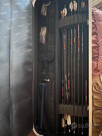 Vendo per inutilizzo stupendo arco olimpico con riser mancino pronto all'utilizzo con tutto quello che serve anche per rifare frecce.