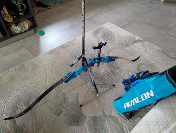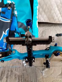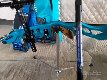 Arco Olimpico mod. Hoyt Riser Bak 23" turchese Sm 1286609 con flettenti Exe SPEE051 66"18 e mirino Shrewd Blue 029" Flex scope kit,più bilanciere,borsone,frecce,trepiedi,il tutto come nuovo ,usato pochissimo.