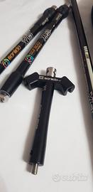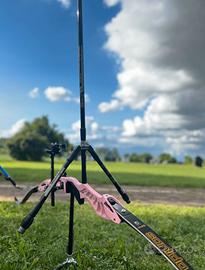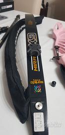 VENDESI SOLO IN BLOCCO riser 25" TBOW , flettenti sanlida X9 da 68" 32# , stabilizzazione completa sanlida x9 , baffi laterali da 10" con attacchi rapidi e vbar ,prolunghino da 5" e centrale da 28", clicker beiter, rest sanlida.