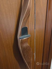 Arco ricurvo da 30 libbre compreso di custodia in stoffa, parabraccio, guanto, estrai freccie, carichino per armare l'arco, faretra da fianco in tela