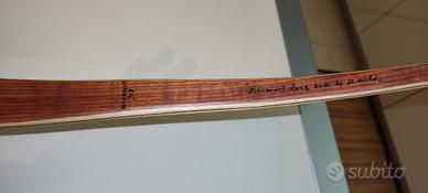 arco ricurvo destro td con flettenti sinosuidali in bamboo con inserti in carbonio.riser in legno lamellare compresso perfettamente bilanciato