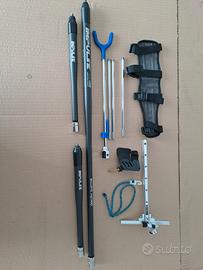 Arco da tiro completo di accessori. Riser Fivics Vellator di 25 " peso 1100 gr in alluminio 6011 - Flettenti Kinetic Engage 66" 26 in fibra di carbonio e vetroresina adatti anche per principianti fino a 70 libbre.Stabilizzatori impulse in carbonio - Mirino WNS - treppiede di appoggio - proteggi braccio e proteggi dita. Faretra e borsone mod Dynamic marca Aurora . Ritiro presso il domicilio