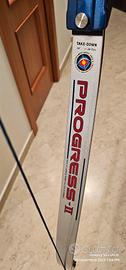 vendesi arco Samick Progress 2 - 70" 38lbs destro riser in lega, completo di accessori: mirino, bottone, stabilizzatore completo, faretra, parabraccio (2 lungo e corto), tubo portafrecce, frecce varie (alluminio e carbonio) borsa in tessuto più altri accessori.