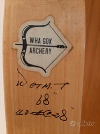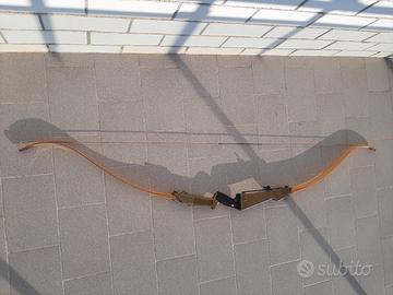 arco ricurvo da tiro a segno, completo di mirino, legno e alluminio, smontabile.