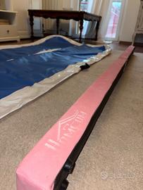 Air Track e Trave morbida e pieghevole, in perfette condizioni, perfetti per allenarti in casa o all’aperto. Lunghezza trave: 210 cm; altezza: 7 cm con gommini sotto. Lunghezza air track: 390 cm; larghezza: 100 cm. Manca l’attrezzo per gonfiare l’Air Track.