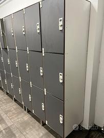 Vendo 3 blocchi di armadietti per spogliatoi palestra, composti da 9 armadietti in totale l'uno.