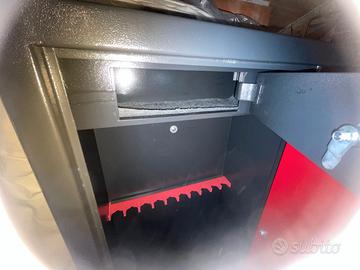 Armadietto blindato per fucili, 10 posti, con cassaforte interna. Possibilità di fissaggio a muro, misure 32 x 53 x 146 (profondità x larghezza x altezza). Condizioni perfette, disponibile per ritiro in loco