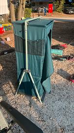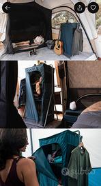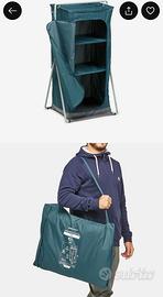I nostri ideatori hanno sviluppato questo armadio per il campeggio, per organizzare e sistemare utensili e accessori. Puoi metterlo all'interno della tua tenda o del gazebo. Non è impermeabile e non è fatto per stare all'aperto. I 3 vani portaoggetti, le 4 tasche per accessori, i 2 ganci per appendere così come il piano superiore ne consentono un utilizzo ottimale e pratico per riporre i vostri vestiti e accessori.