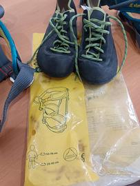 vendo attrezzatura arrampicata bambino usata due volte , pari al nuovo , misure in foto. euro 70 il kit, se presi assieme 120 di tutto.