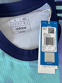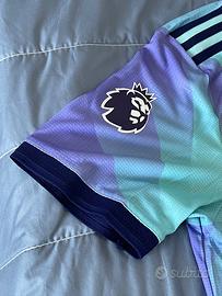 Dettagli tecnici: Taglia L (53 cm larghezza, 73 cm lunghezza), 100% poliestere riciclato, fit slim, etichetta “Authentic Licensed Product”, Emirates Fly Better, patch Premier League.