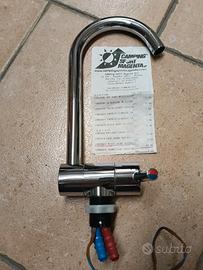 Set di vari oggetti per il camper, n. 5 lampade plafoniera 12volt, aspirapolvere ricaricabile, 2 tasche rete portaoggetti, presa multipla per presa 12 volt e rubinetto miscelatore con microinterruttore.