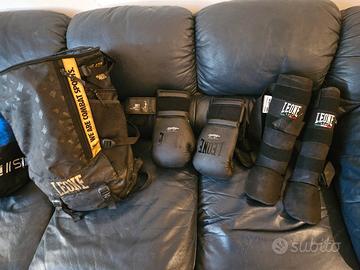 Borsa tipo cartella della Leone paratibbie leone taglia L guanti Leone da 10 oz e pantaloncini thai taglia L nuovi usati un mese .