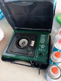 3 tende da campeggio apertura istantanea 2 Frigo portatile di cui 1 elettrico da 220w 4 sgabelli pieghevoli nuovi 1 fornello 1 stendino girevole