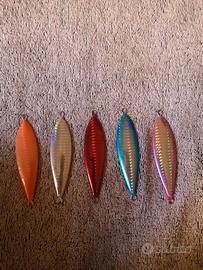 5 ARTIFICIALI VARI COLORI DA 60gr, LIGHT JIGING, SLOW, VERTICAL JIGING PREZZO RIFERITO A TUTTO IL LOTTO DI 5 PEZZI. SONO STATI USATI POCO, PRATICAMENTE NEMMENO 10 USCITE. NON HANNO SEGNI DI RUGINE O COLPI RICEVUTI. VENGONO FORNITI SENZA AMI.