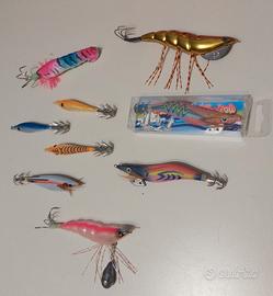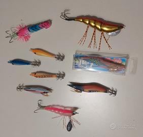 set di 9 pezzi di artificiali per cefalopodi. 3 polpare , 2 egi, 4 tataki. tutti NUOVI. mai toccato acqua.