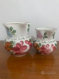 Da ARTIGIANATO FRIULANO set 6 BROCCHE TIPICHE FRIULANE in CERAMICA, dipinte a MANO con motivi FLOREALI e scritte in LINGUA FRIULANA. Usate solo come arredamento. NO VENDITA SINGOLA.