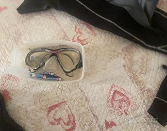 Vendo muta semistagna da donna cucita amano da ditta specilizzara per soggetto alto 158/160 cm, completa di cappuccio separato , calazari misura 37/38, pinne S, cintura pesi, maschera , tubo, torcia .