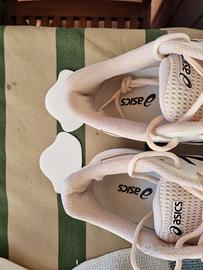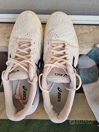 Scarpe Tennis Asics gel challenger mis. 43.5 ottime condizioni soltanto leggermente scucite nella parte posteriore ma fornisco patch adesivi salvatallone che prolungheranno la vita di queste meravigliose scarpe