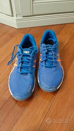 Scarpe Asics Gel Game 9 x terra rossa mis.40.5 eur x ragazzi che praticano tennis e desiderano ottime scarpe ed un buon comfort. Colore u/arancio con intersuola ammortizzante che assorbe urti e favorisce spostamenti.