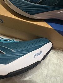 Vendo per inutilizzo (regalo errato) questo paio di ASICS Novablast 4, completamente nuove e mai indossate. Le scarpe sono immacolate, come appena uscite dal negozio, complete di scatola originale integra.