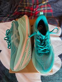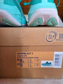 Vendo Asics Superblast 2 taglia 43.5 colore Illuminate Green in ottime condizioni. Le scarpe hanno percorso poco più di 100km (Strava). Indossate per corse brevi e ad alta intensità. Sono perfette per qualsiasi tipo di corsa, prediligono le mezze maratone o i 10k a ritmo medio/alto. Battistrada e suola ancora perfetti. Tomaia impeccabile. Colore fantastico. Vendo per passaggio a Superblast 3. Lavate e profumate, vendo in scatola originale.
