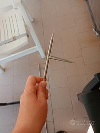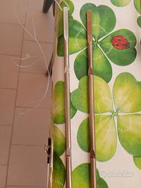 due aste taithiane una da 115 cm adatta per un arbalete 75 e l'altra 85 cm adatta per un arbalete 50 cm .entrambe sono di acciaio inox resistenti alla corrosione e alla ruggine diametro 6,5 mm doppia tacca di mira per gestire a proprio piacimento la potenza .