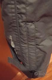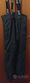 AST Astrolabio salopette da sci nera, con bretelle taglia 54 in tessuto traspirante antivento. Chiusura con cerniera e due bottoni a clip. Le bretelle elastiche sono regolabili. Quattro tasche laterali con cerniera. Chiusura fondo con velcro e gambaletto antineve interno alla gamba.