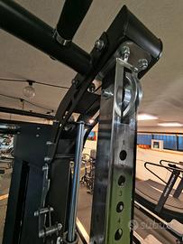 Stazione di allenamento toorx professional asx 7000 con 6 mesi di vita completa di tutti gli accessori di cui la maggior parte mai usati e ancora inscatolati. Il macchinario è perfetto, usato pochissimo in quanto operativo in una piccola ASD. Allego descrizione: ASX 7000 - stazione da allenamento Toorx ASX 7000 stazione da allenamento All in One progettata per offrire un training completo di forza e resistenza in un’unica struttura compatta. Combina Dual pulley, Smith Machine e Rack Functional con ampio set di attachments, per eseguire esercizi total body con traiettorie fluide e controllate anche in spazi ridotti. pacco pesi: in acciaio 2x90 kg con carter di protezione pulley: regolabile 300-1875 mm su 50 livelli interasse 25-50 mm dotazioni: 3-IN-1 dual pulley, smith machine, rack. Barra trazioni, 8 ferma dischi a molla ø49 mm attachments: cavigliera, corda doppia tricipiti, catena, 2 maniglie trazioni, maniglia doppia, barra tricipiti, bilanciere e bilanciere CURL struttura: tubolare a sezione rettangolare 50x70 mm - spessore 2,5 e ovale 50x100 – spessore 2,5 mm. Tutti gli Accessori inclusi: Vertical leg press N° variante 2317520 Multifunctional bar N° variante 2317531 Monolift N° variante 2317532 Lat seat N° variante 2317517 Perno porta pesi N° variante 2317581 Lat pull down N° variante 2317524 Jammer arms N° variante 2317514 Parallele N° variante 2317496 Set 2 perni porta pesi per smith bar N° variante 2317582 Landmine N° variante 2317522 Supporti bilanciere e fermi di sicurezza N° variante2317561 Pedana per low row N° variante 2317528