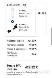 Ciao vendo atomic bent 85 da 170 montato factory (taglia di scarpone attuale 42.5), acquistati ad inizio stagione come da foto pagati 420€