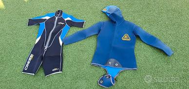 Vendo attrezzatura completa per la pesca sportiva e subacquea, ideale sia per principianti che per pescatori esperti. Il kit comprende: 5 canne da pesca, di cui 3 con mulinello montato, 1 senza, e una fissa, adatte a diverse tecniche. Lenze di diverse misure, per ogni esigenza di pesca. Ami e galleggianti di tutti i tipi, perfetti per differenti tipi di prede. Piombi e forbici per la preparazione dell'attrezzatura. 3 scatole porta accessori, organizzate per tenere tutto in ordine. Panca da pesca con scomparti porta oggetti, per maggiore comodità e praticità. Muta da sub Cressi shorty, ideale per immersioni in acque temperate. anche un atrezzo con area compressa che non mi fa pubblicare la foto perche dice che è pericoloso , ottimo per la pesca in apnea. Tutto il materiale è in buone condizioni e pronto all’uso. Per informazioni o altre foto, contattatemi!