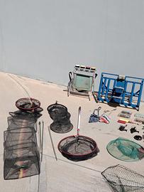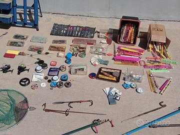 Vendo in stock attrezzatura da pesca su fiume lago laghetti . Lenze pesi galleggianti per ogni tipo ami terminali guadini nasse mulinelli porta canne piombi.