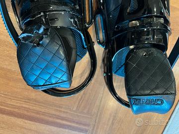 Vendo attacchi da snowboard Burton Cartel EST in buone condizioni generali, ad eccezione delle fasce superiori che presentano strappi e necessitano di riparazione o sostituzione. Questi attacchi EST sono progettati specificamente per tavole dotate del sistema The Channel.