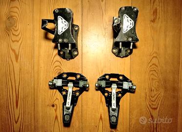 Attacchi Dynafit Speed Turn in ottime condizioni, smontati e controllati in laboratorio da personale competente prima di essere messi in vendita. Manca una piastrina per i rampant facilmente trovabile come ricambio (costo intorno ai 2€). Viteria non inclusa. Qualche minimo segno di normale utilizzo, perfettamente funzionanti. Peso 350g. Garanzia Life time Dynafit.