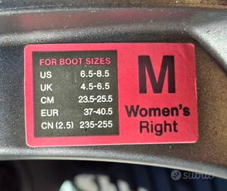 Attacchi Snowboard Burton Stepon Escapade 2026 donna taglia M. Taglia M permette scarponi donna da 37 a 40.5. Versione Re:Flex compatibile sia per tavole Burton The Channel che per tavole tradizionali. Immacolati, usati 6 giorni, costo da nuovo circa 400 euro. La tavola non è inclusa, solo attacchi. Si spedisce, costo 15 euro spedizione, pagamento bonifico bancario. Consegna a mano Roma eur.