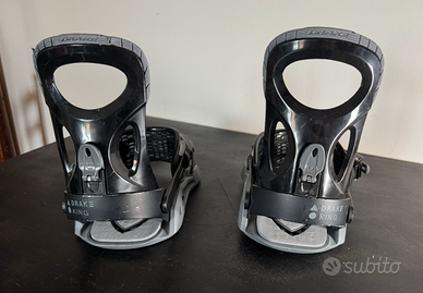 Attacchi da snowboard Drake King con solo 2 settimane di snowboard alle spalle. Taglia large. (Io ho un 43). Perfettamente funzionanti, compresi di dischi, tutte le viti, guarnizioni ecc.