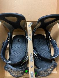 Vendo attacchi da snowboard marca Ride maestro colore nero con particolari verdi in buone condizioni taglia L con normali segni di usura, erano usati con degli scarponi di taglia M giusto per essere precisi.