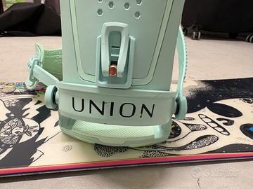 Vendo per trasloco la tavola é rovinata, vendo principalmente per gli attacchi Tavola 148 cm Attacchi union trilogy taglia M